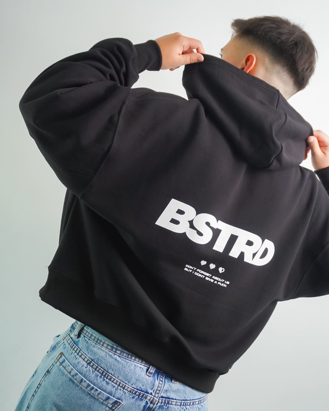 Buzo BASTARD Estampa en frente y dorso.